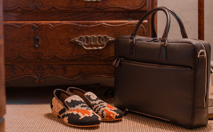 - Leather covered metal bar at end of board so lays flat